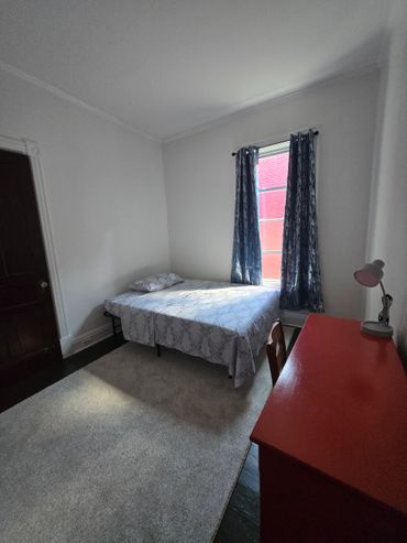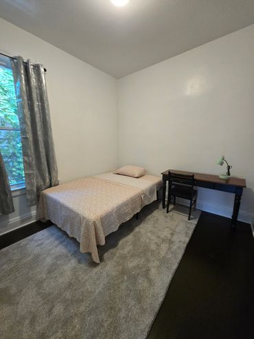 Each bedroom is spacious (100 sq ft) and comes fully furnished with a full-size bed, new memory foam mattress, desk, and closet – perfect for studying and relaxing. High 10-foot ceilings give the space an open, airy feel.